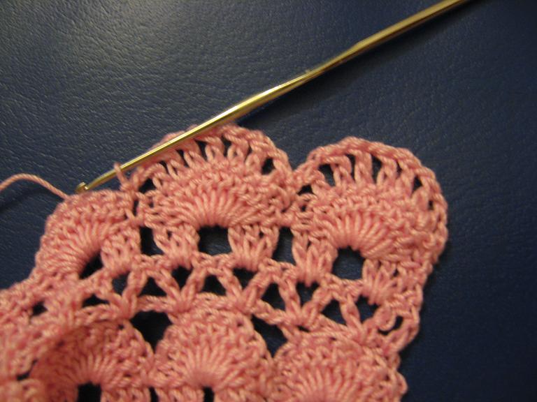وعند نهايه السطر بعد اخر عممود بلفه اشتغلي 2 سلسله ثم اشتغلي عمود بدون لفه فوق العمود بدو لفه من السطر السابق