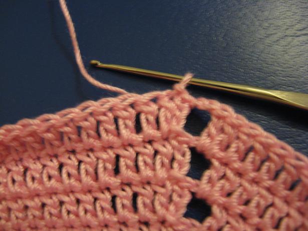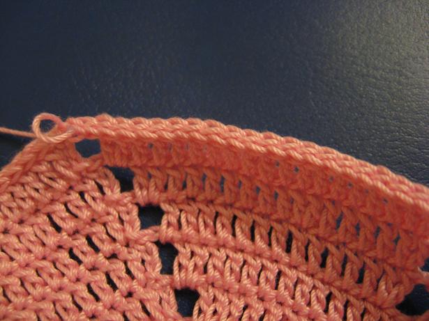 اشتغلي بغرزه المنزلقه داير ما دار الطاقيه علشان تعطيها حافه ومتانه