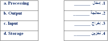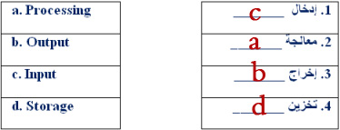 3)اخراج: اظهار النتائج من خلال اجهزة الاخراج مثل الشاشة والطابعة.