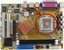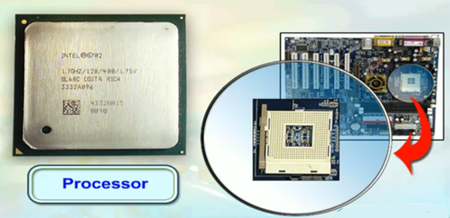 ويركب المعالج على اللوحة الام (لاحقا سيتم التكلم عنا) والصورة توضح ومؤشر عليه بالسهم