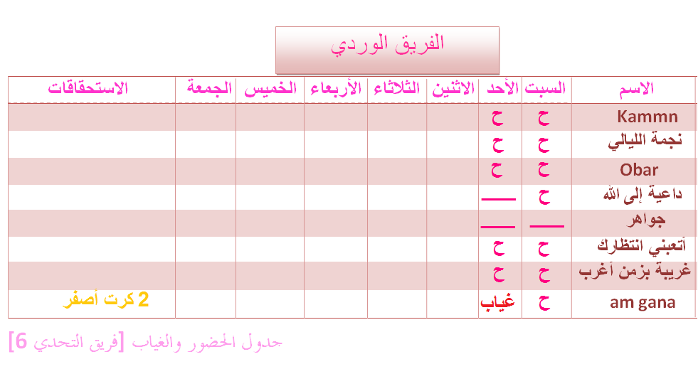 ورجاء التواجد والالتزام لان التزامكم وميزانكم ياثر على الفريق