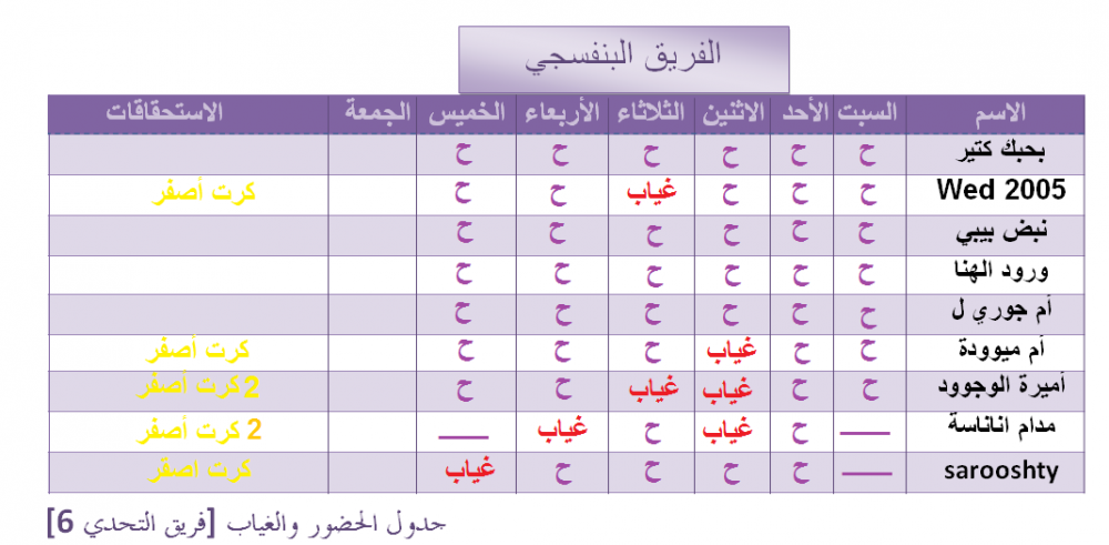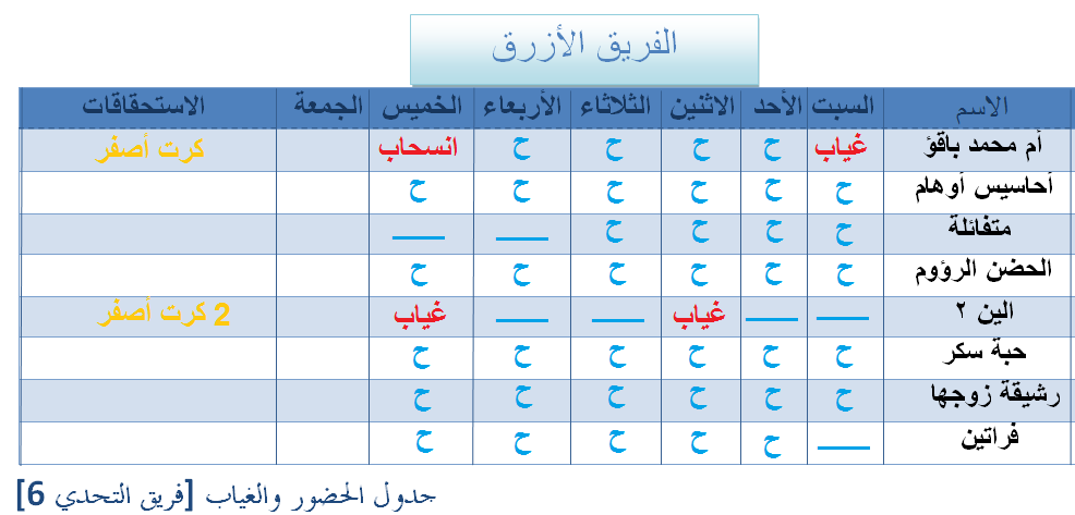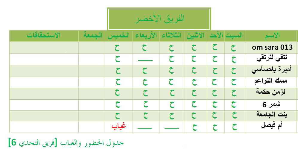و لما صرت في موقف احتاج في مسؤولة فريق بدل الغياب لمسؤوله فريقكم فكرت فيك لانه ما شاء الله مبين انك جادة و ملتزمة و فعلا و لله الحمد ابدعتي و كان قرار في محله تفاعلك و التزامك و تجاوبك مع عضوات فريقك اكثر من رائع و تستاهلي هذا الشعار بكل جدارة