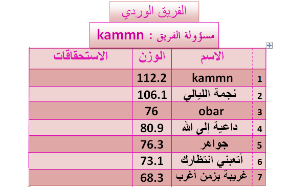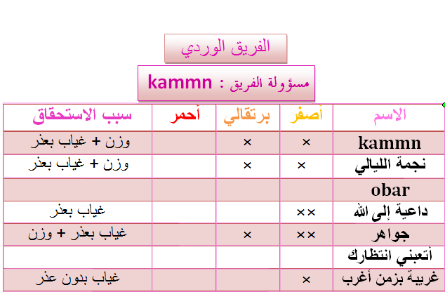 الكروت المستحقة لكل عضوة مع سبب الاستحقاق من بداية الجروب