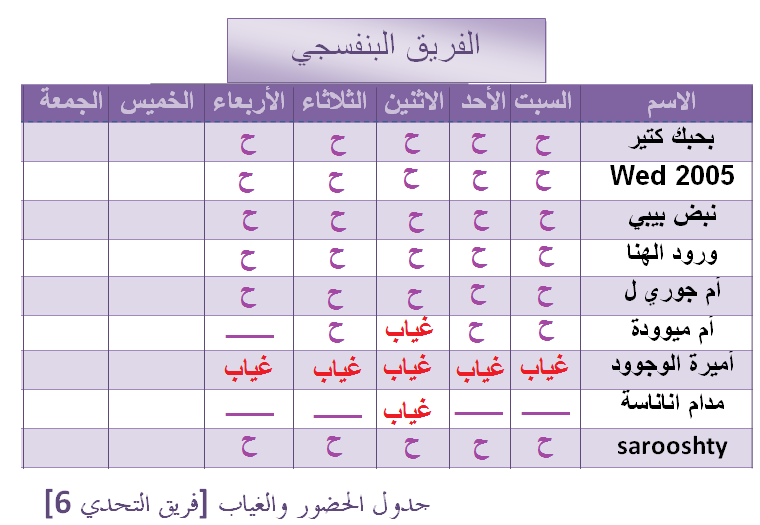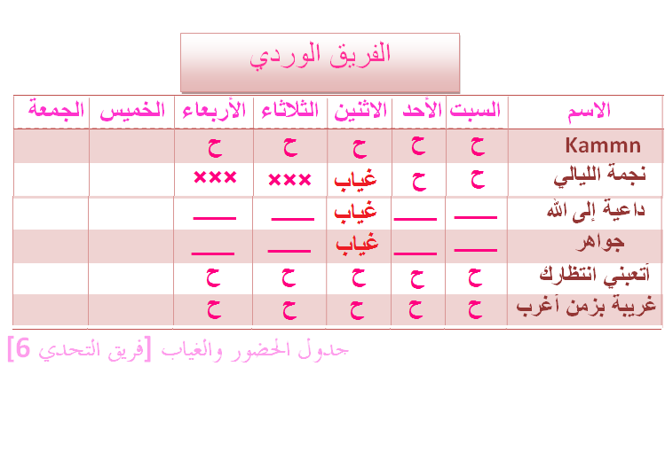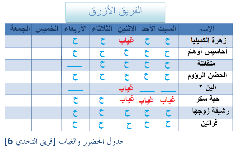 الحضور والغياب لـ يوم الثلاثاء 21\1\2014 [ الأسبوع الخامس ]الحضور والغياب لـ يوم الثلاثاء 21\1\2014 [ الأسبوع الخامس ]