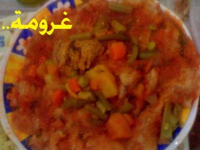 وقدميها وبعد التقديم ضعي على الخبز الخضار واللحم اللي بالمرق..