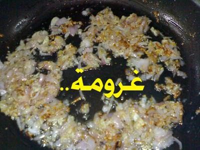 اقلي البصل بالزيت والزبدة لحد مايذبل ثم ضيفي الثوم وقلبي لحد مايبدون يتغير لونهم ثم ضيفي الطماطم المهروسة والبهارات لحد ماتغلي وتتسبك..