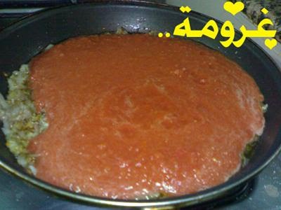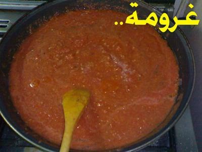 2-3 ك طماطم مهروسة مع ك ماء و2 علبة صلصة طماطم معمولة بالخلاط