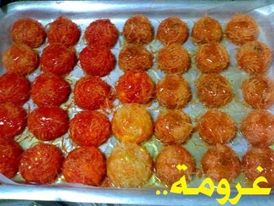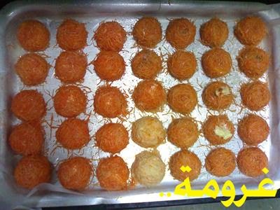 الصغيرة والفاتحة محشية مكسرات والكبار ولونهم برتقالي غامق جبن وقشطة ..
