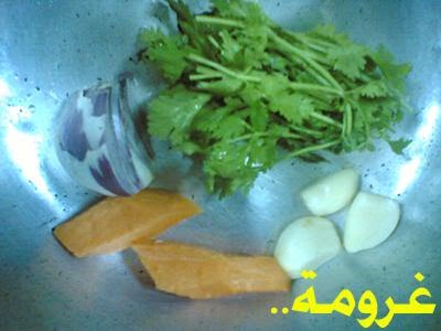 2 صدر دجاج مقطع مكعبات "مسلوق ب4 حبات ثوم كاملة بدون دق وحبة بصل متوسطة بدون قص ولفة كزبرة "لفيها بخيط عشان تسهل ازالتها" وجزر وفلفل اسود وملح وبهارات حب"