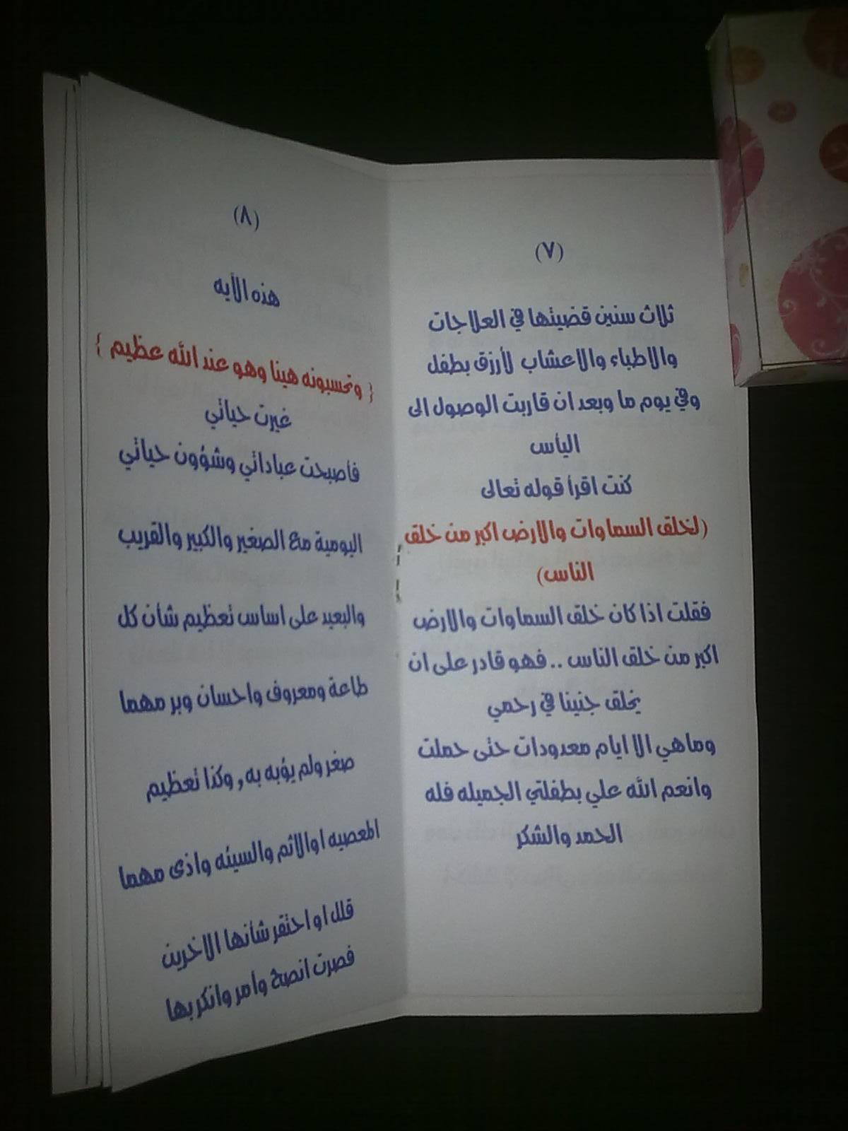 * الورقة غلفتها بالتجليد الشفاف حتى لاتتأثر بقطرات الماء