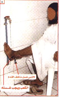 ثم يغسل رجليه مع الكعبين ، لقوله تعالى { وأرجلكم إلى الكعبين } والكعبان هما العظمان البارزان في أسفل الساق ، ويجب غسلهما مع الرجل .