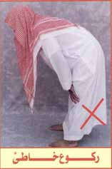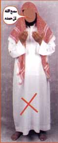 * ويسن أن يقول في ركوعه : ( سبحانك اللهم ربنا وبحمدك ، اللهم اغفر لي ) ، أو يقول : ( سبوح قدوس رب الملائكة والروح ) . * ثم يرفع رأسه من الركوع قائلاً : ( سمع الله لمن حمده ) ويُسَن أن يرفع يديه – كما سبق – ثم يقول بعد أن يستوي قائماً ( ربنا لك الحمد ) ، أو ( ربنا ولك الحمد ) ، أو ( اللهم ربنا لك الحمد ) ، أو ( اللهم ربنا ولك الحمد ) . * ويُسن أن يقول بعدها : ( ملء السماوات والأرض وملء ما شئت من شيء بعد ، أهل الثناء والمجد ، أحق ما قال العبد ، وكلنا لك عبد ، لا مانع لما أعطيت ، ولا معطي لما منعت ، ولا ينفع ذا الجد منك الجد ) . * ويُسَن أن يضع يده اليمنى على اليسرى على صدره في هذا القيام ، كما فعل في القيام الأول قبل الركوع . وضع خاطئ لرفع اليدين * ثم يسجد قائلاً : ( الله أكبر ) . * ويقدم ركبتيه قبل يديه عند سجوده ، لحديث وائل بن حُجر رضي الله عنه قال : ( رأيت النبي صلى الله عليه وسلم إذا سجد وضع ركبتيه قبل يديه ) . * ويجب أن يسجد المصلي على سبعة أعضاء : رجليه ، وركبتيه ، ويديه ، وجبهته مع الأنف ، ولا يجوز أن يرفع أي عضو منها عن الأرض أثناء سجوده ، وإذا لم يستطع المصلي أن يسجد بسبب المرض فإنه ينحني بقدر استطاعته حتى يقرب من هيئة السجود . * يُسَن في السجود أن يُبعد عضديه عن جنبيه, لأنه صلى الله عليه وسلم ( كان يسجد حتى يُرى بياض إبطيه ) ، إلا إذا كان ذلك يؤذي من بجانبه . * ويُسَن في السجود أن يُبعد بطنه عن فخذيه . * ويُسَن في السجود أن يفرق ركبتيه ، أي لا يضمهما إلى بعض ، وأما القدمان فإنه يلصقهما ببعض لفعله صلى الله عليه وسلم ذلك في سجوده ، لأنه صلى الله عليه وسلم كان ( يرص عقبيه في سجوده ) . * يكره أن يتكئ المصلي بيديه على الأرض في سجوده, لقوله صلى الله عليه ( لا يبسط أحدكم ذراعيه انبساط الكلب ) ولكن يجوز أن يتكئ بيديه على فخذيه إذا تعب من طول السجود . يتبع* ويسن أن يقول في ركوعه : ( سبحانك اللهم ربنا وبحمدك ، اللهم اغفر لي ) ، أو يقول : ( سبوح قدوس رب...