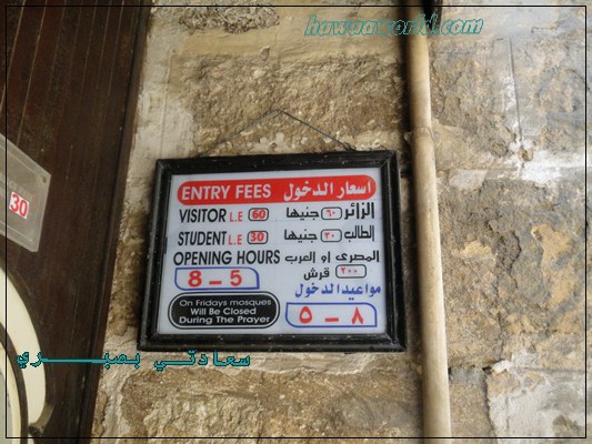 وراحه بالفندق وصلاه وبعدها توجهنا بالتاكسي بـ30 جنيه إلى قلعة صلاح الدين كانت الساعه السادسه عصراً ولكن للأسف لم ندخل حيث ان مواعيد القلعه من 8ص-4عصراً