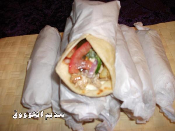 يآزين الطكآطم وهي مختلطه مع الصوصو والدجاج ، وملفوفه بخبز ، والى الفم مباشره يم يم <<داخله جو مع جوعها هع هع