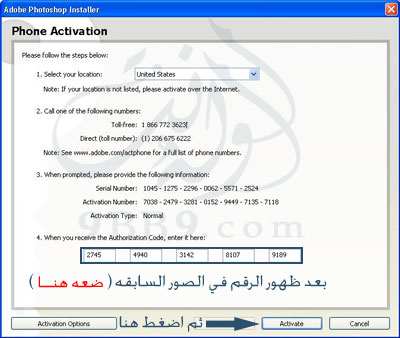 - ثم ضغ رقم التفعيل الذي نسخناه بالخطوه السابقه .