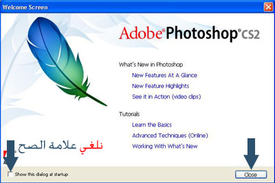 عندما تنتهي من التنصيب وتفتح الفوتوشوب ستواجه الصور التالية :