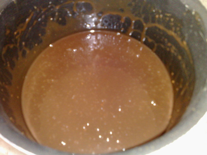 4} ادخليها الثلاجه الى ان تغلظ لكن تبقى قابله للسكب