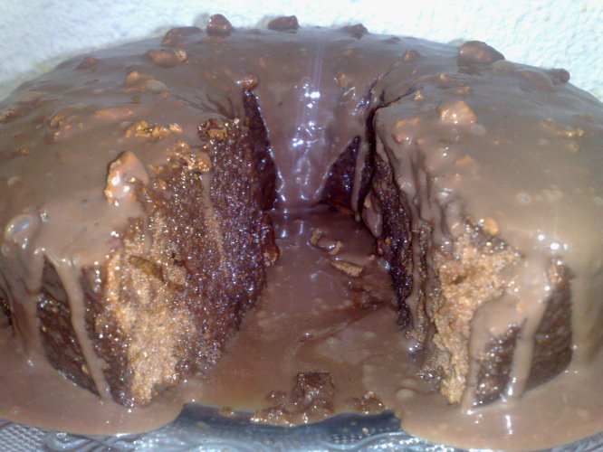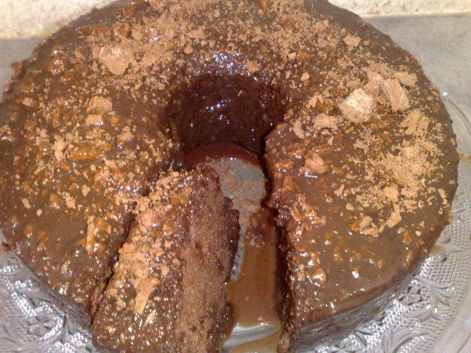 3} ارفعي المزيج من على النار واسكبيه على الشوكولاته وعهو ساخن وابدئي