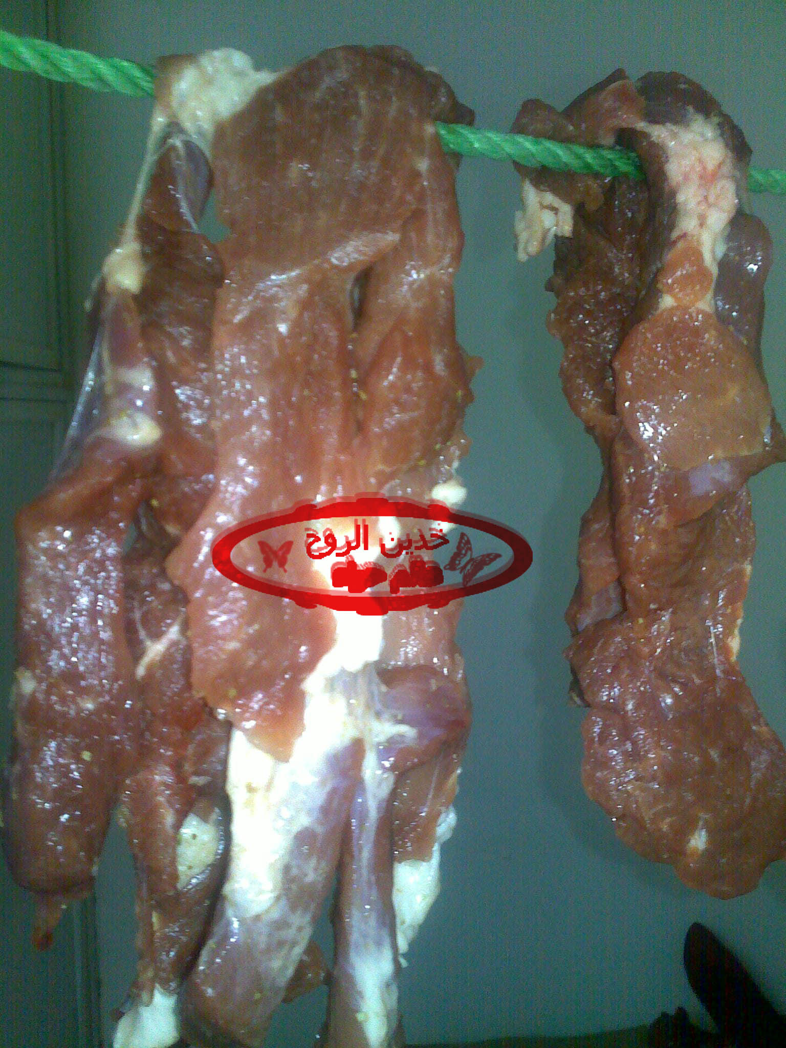 لازم امي بالعيد تقفر اللحم وبعضهم يسميه قديد <<< وبالعربي الفصيح يعرف باللحم المجفف