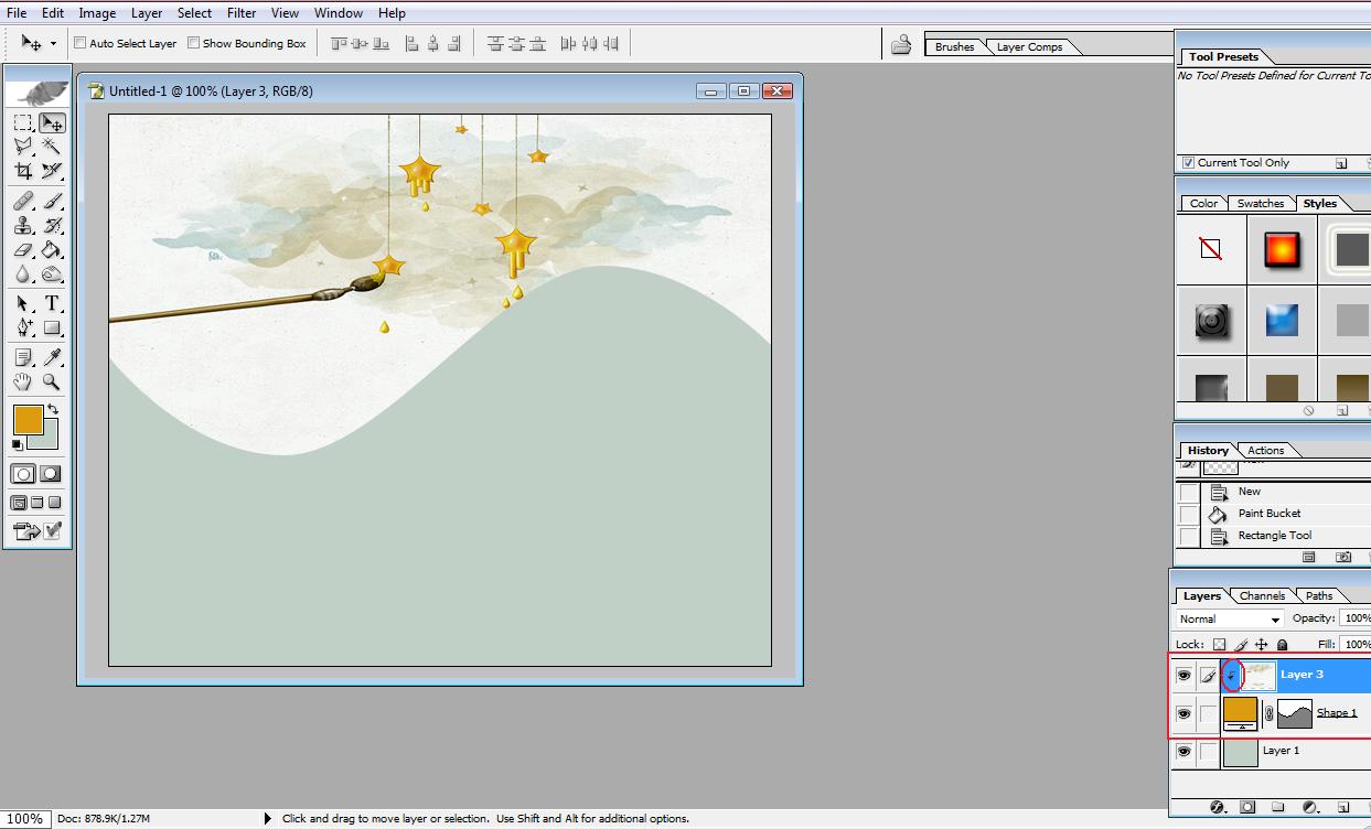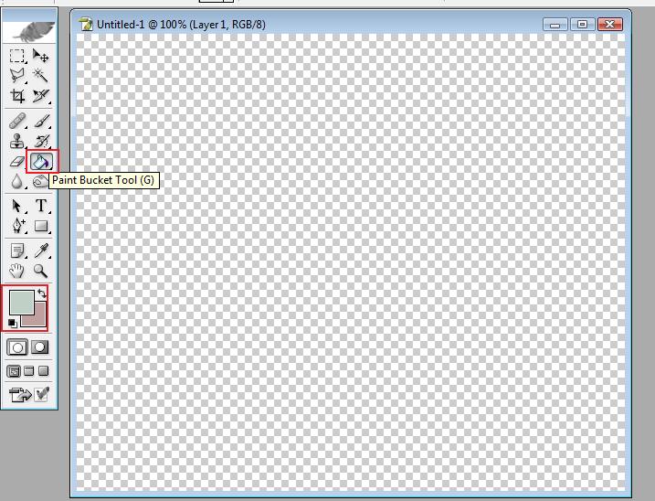 نختار اداة السطل ونسكب في العمل بالضغط بالموس على السطل ومن ثم بداخل العمل ..