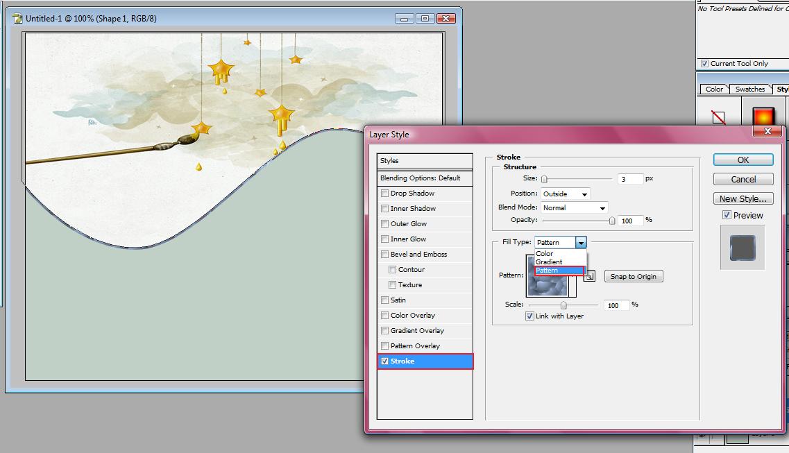 ونضغط Ctrl + G راح تتطابق الطورة على المنحنى