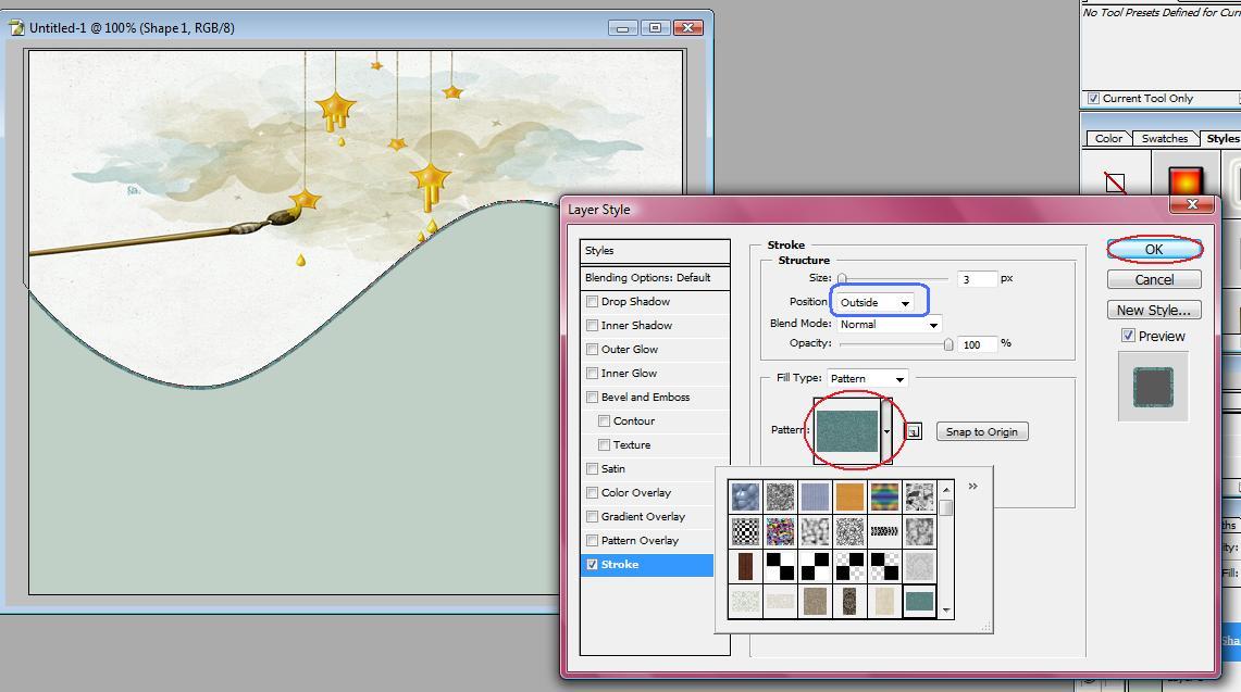 اذا قصدك حجم المنحنى كله يرجع لحجم المربع اول ماترسمينه انتي تحددين قد ايش تبينه ربع العمل نصه اكبر اصغر حسب بس بما اننا نصمم لموضوع اتوقع ربع العمل كويس .. اما اذا تقصدين حجم خط الباترن من نفس مقاسه لم تختارينه وضحته لك في الصورة بالاخضر هنا