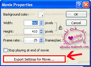 فتظهر لنا هذه النافذه نختار منها زر Exporetsettings for movie