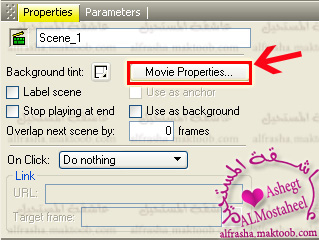 اول شي نظغط على الscene (لكي يتحدد وتظهر خصائصه
