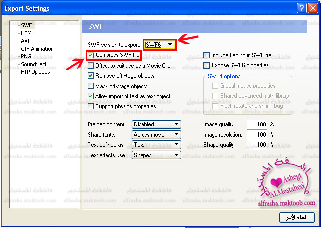 *نختارSWF6عندSWF version to export((يمكن تشغيل الملفات المضغوطة