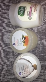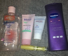 هذولي اشيائي فازلين ترطيب بليل مرطب وجه و حق العيون و بيبي ايل مع مسك بعد الشاور توني امس سويته ماسكات الشعر الجين استخدم الي بنص للشعر الجاف و التالف ااول شي كنت شاريه البرتقالي لانه بزيت الارقان ما امدني استخدمه الا مرتين بعدين لما صبغت شعري شريت الاحمر و الحمدلله مرتاحه عليه هذولي ندمت اني شريتهم السنفره ما تقارن بسنفرات كاب و الشور جل ينشف الجسم بطريقه مو طبيعيههذولي اشيائي فازلين ترطيب بليل مرطب وجه و حق العيون و بيبي ايل مع مسك بعد الشاور توني امس سويته...