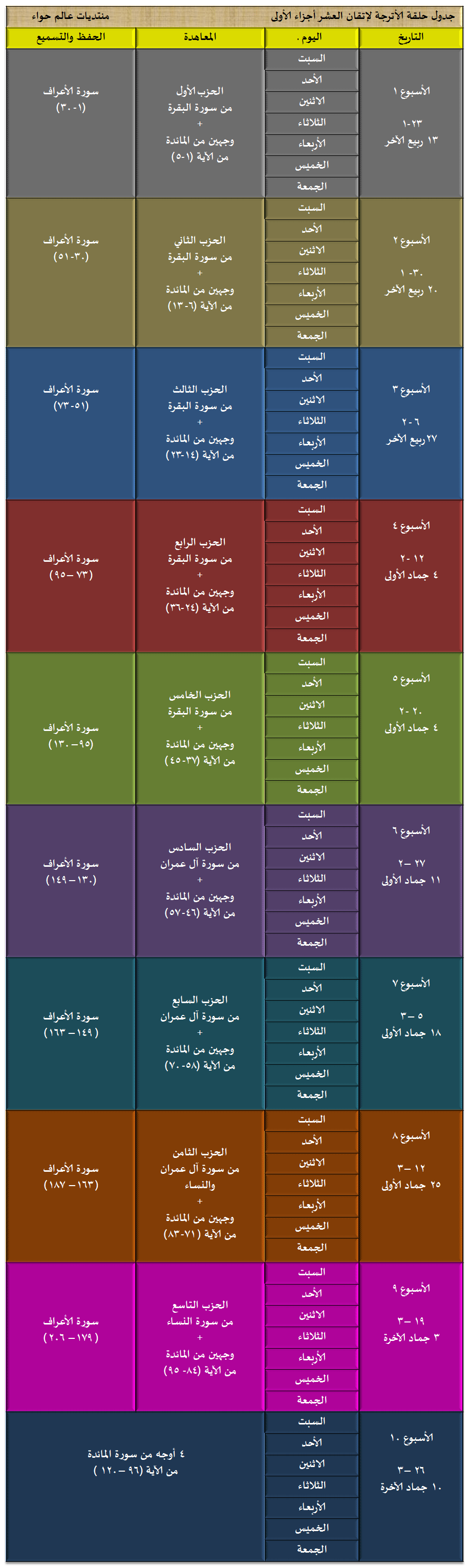 كل حزب له معاهدة أسبوع يمكنك من خلاله تكراره بالعدد الذي تطمحين إليه
