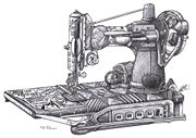 وفي 1830 حصل خياط فرنسي، بارتلمي ثيمونييه، على براءة اختراع لماكينة خياطة تحيك طرفين مستقيمين من القماش باستخدام غرزة متسلسلة. وبحلول 1841، أصبح لدى ثيمونييه مصنعاً فيه 80 ماكينة خياطة لحياكة الزي الرسمي للجيش الفرنسي. وقد تدمر المصنع على أيدي المتظاهرين من الخياطين الفرنسيين المتخوفين من فقدان وظائفهم . لم ينجح ثيمونييه في استخدام ماكيناته بعد ذلك.