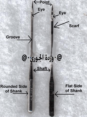3-الوجه : إلى اليسار ويحمل الأجزاء التي يمر بها الخيط أثناء اللضم.