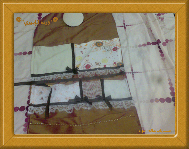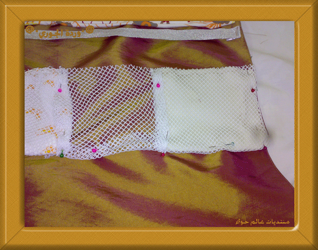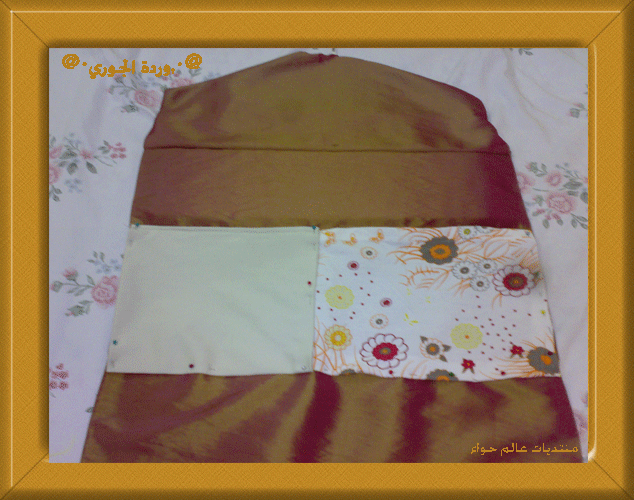 اولا": مقاس الجيب الطول 19سم اما العرض انا عملت 3جيوب واحد كبير وهو من القماش الساده و2 من المشجر وهي اصغر في العرض ولكن الطول متساويه