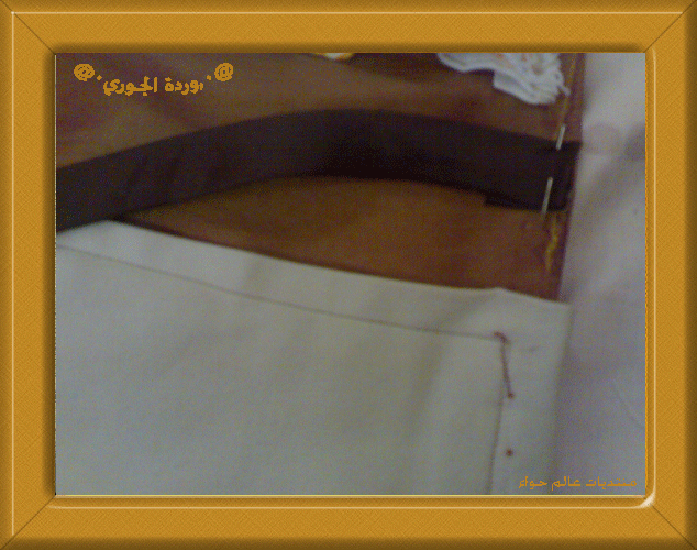 ثانيا":بعد قص القماش ولك حريه الاختيار ان يكون من القماش او من قطعه اخرى نظفي طرف القماش العلوي بثنيه وخياطته