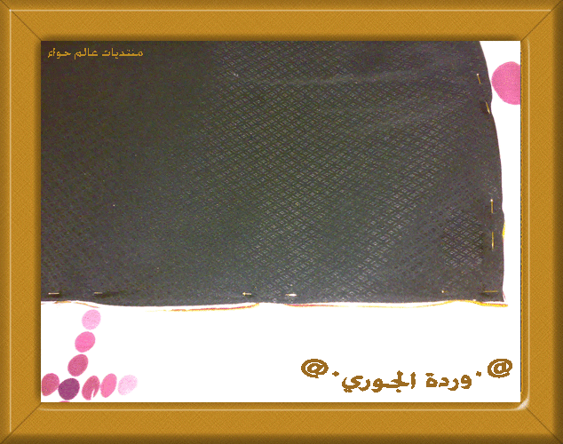 ثالثا":ثبتي الجيوب على قطعة القماش الاساسيه مع ملاحظة ثني اطراف القماش للداخل من اليمين والشمال والاسفل بالدبابيس