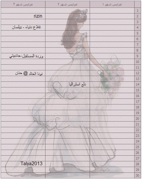 عرايس شهر ثلاثه بعد اذن بيلسان (انا اضفت حنان وجاذبيتي وانا بالجدول )