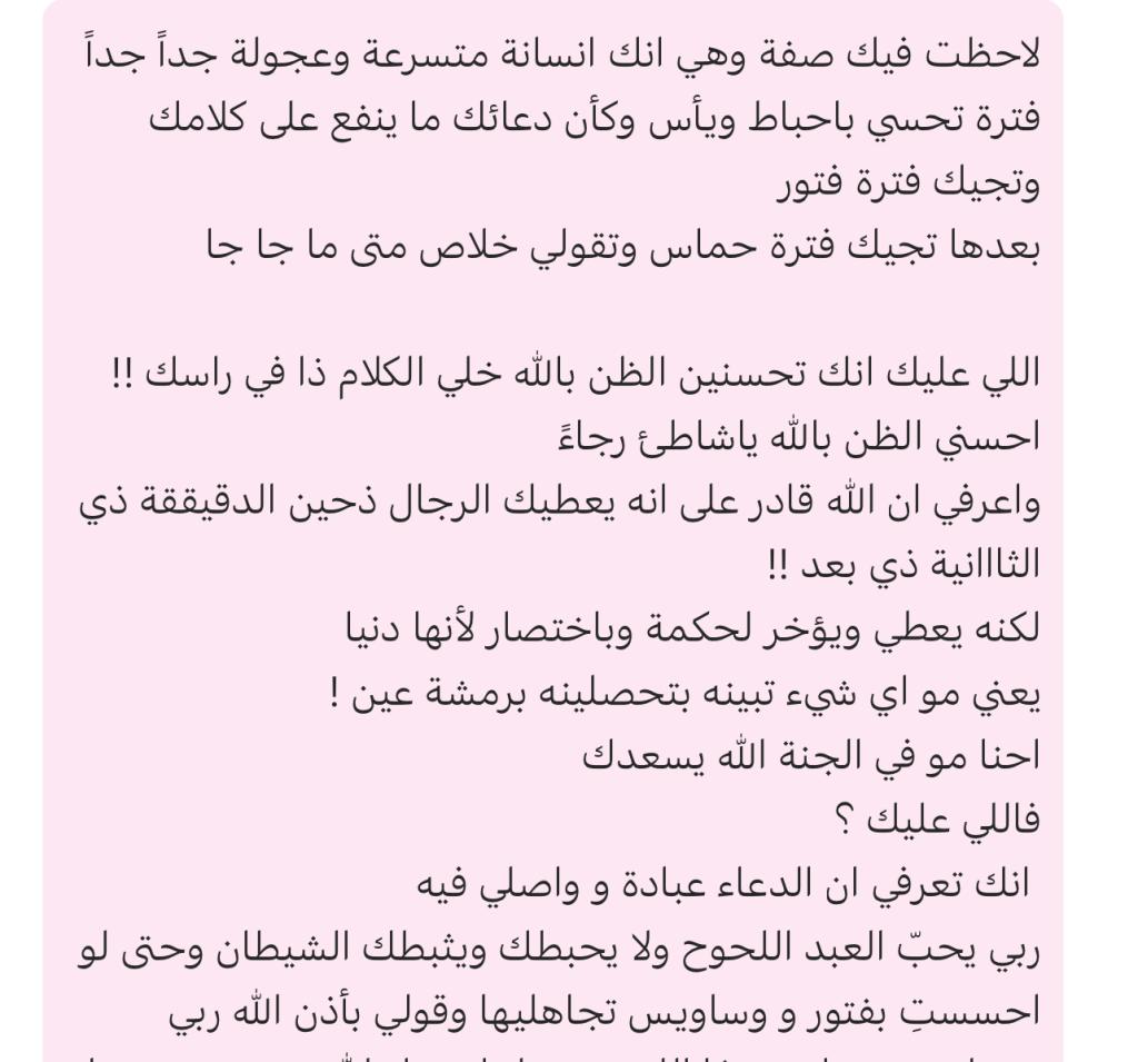 الناس اللي تدخل عليّ بالخاص كلهم راقين مثل كذا ولله الحمد 🤍، قلوب نظيفة أحسبها ولا أزكيها على الله 🤍.. شكرًا لكل شخص أسدى إليّ معروفا ورحم الله امرءًا أهدى إليّ عيوبي، وهذا الإهداء الذي يقصده عمر رضي اللهُ عنه ♥️