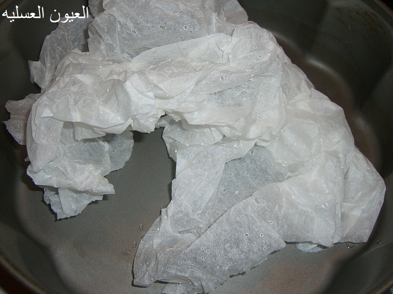 أبلل ورق الخبز تحت المي و اعصرها بعدين اخليها فوق القالب لحتى تسهل علي الشغل, طريقه جدا حلوه بتغنينا عن اضافه الزبده و الطحين بأسفل القالب
