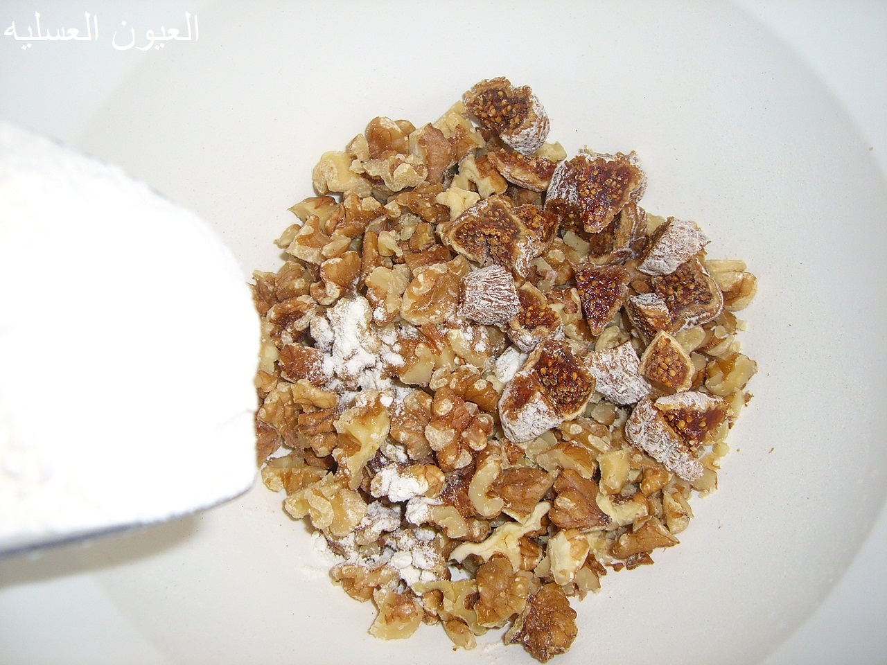1 كوب جوز مفروم خشن أو زبيب أو تين مجفف الي تحبي