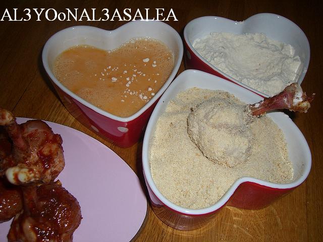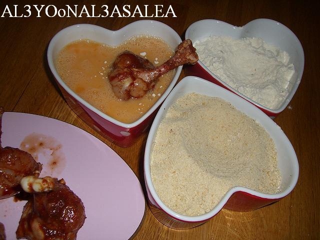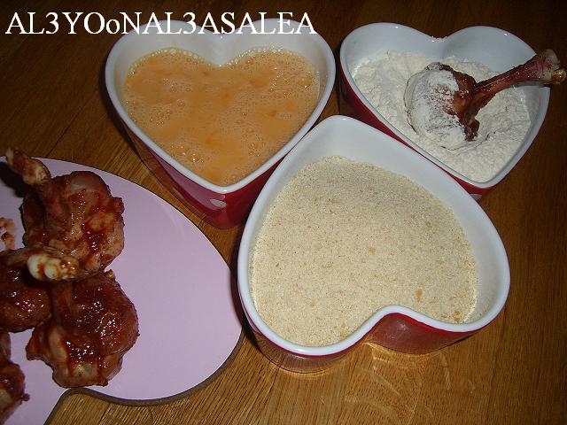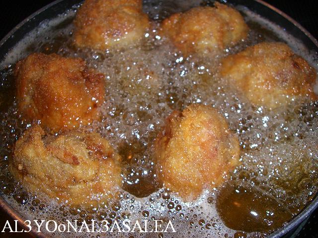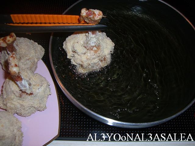 الطريقه الثانيه: نغطسهم بالطحين، البيض، الكعك المطحون ونقليهم في زيت غزير