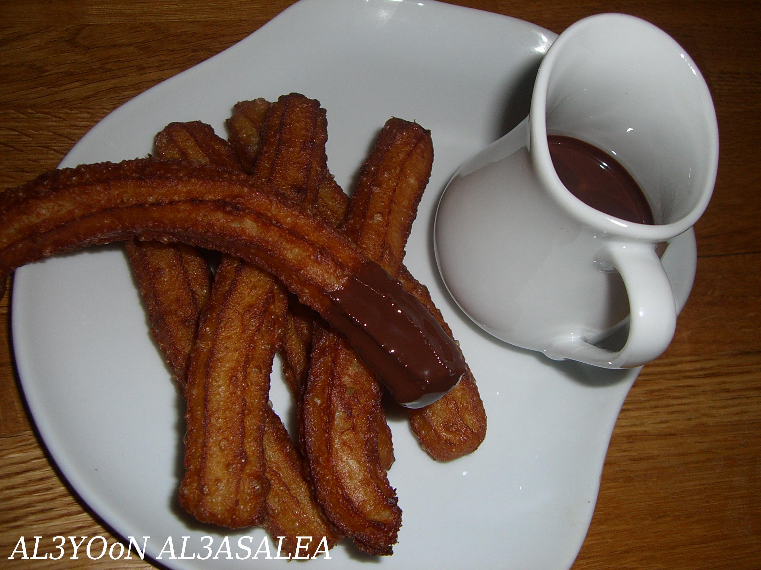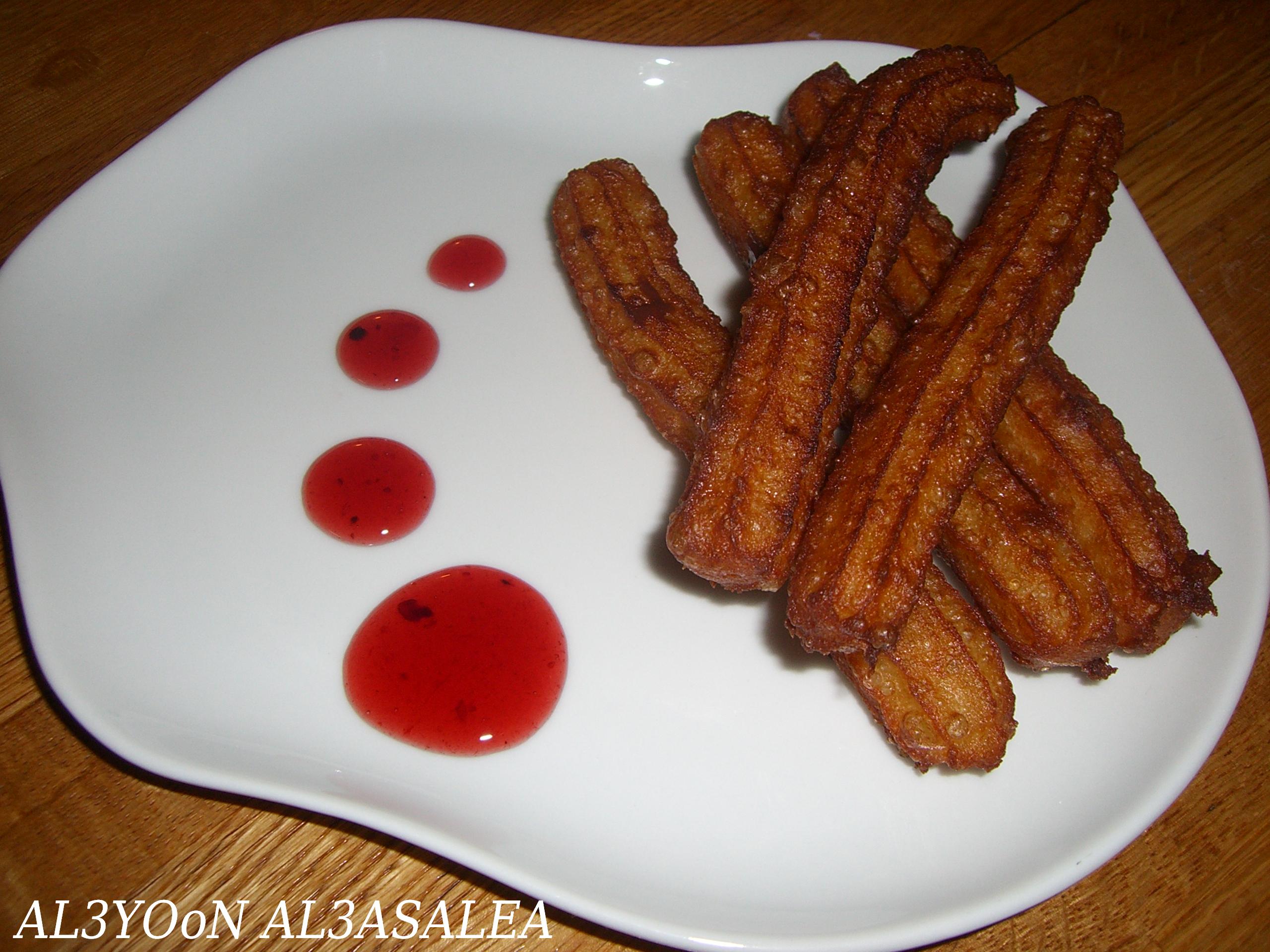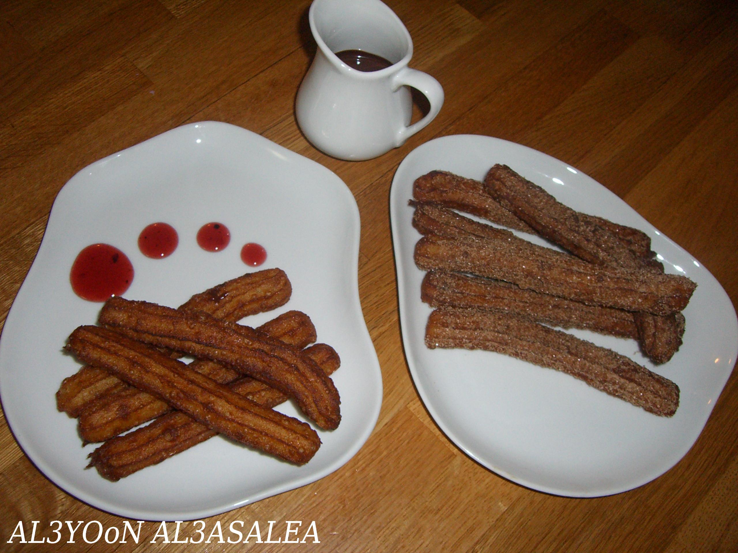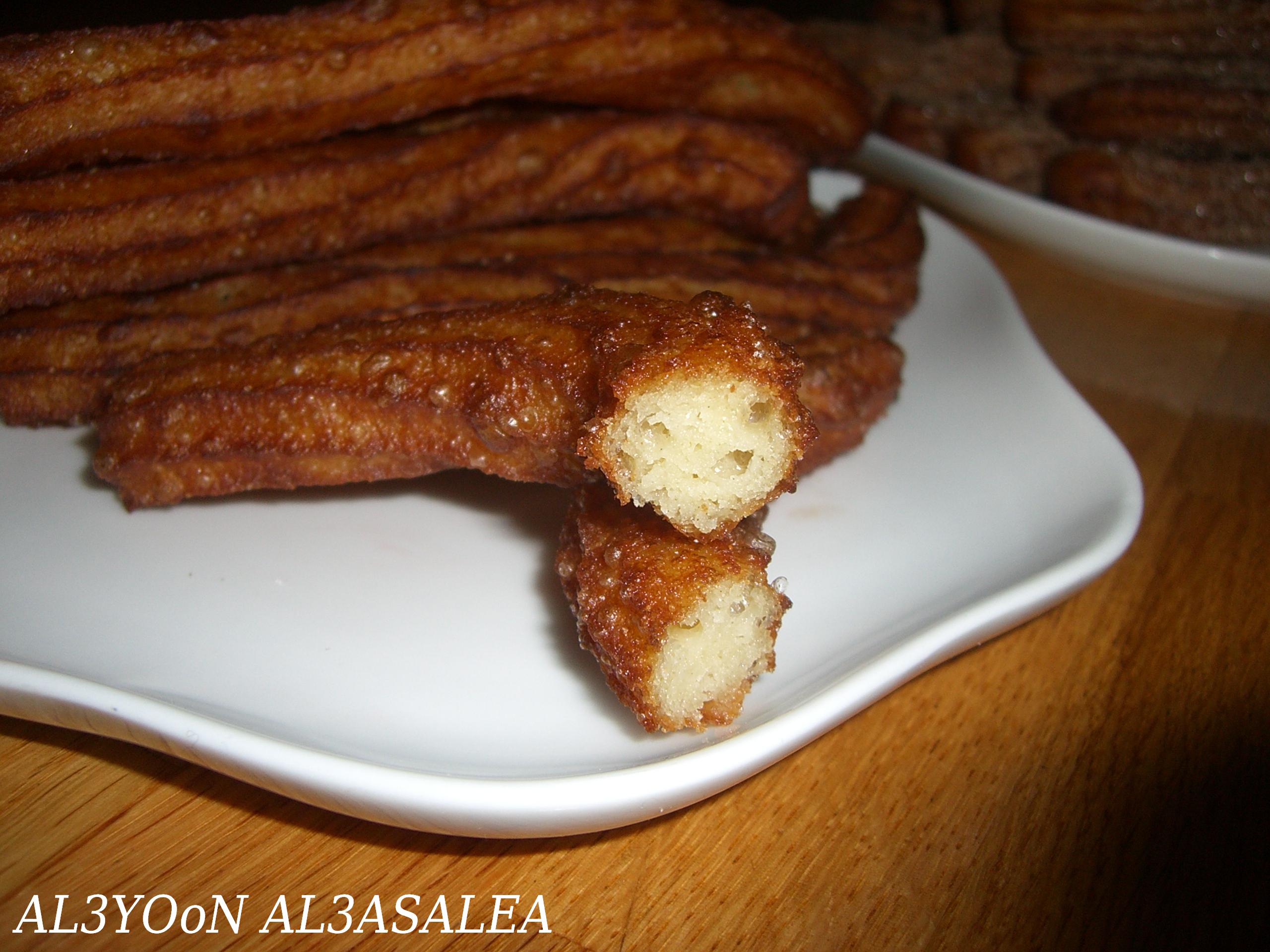 نخلط السكر و ملعقه قرفه و ندحرج الشوروس فوقها