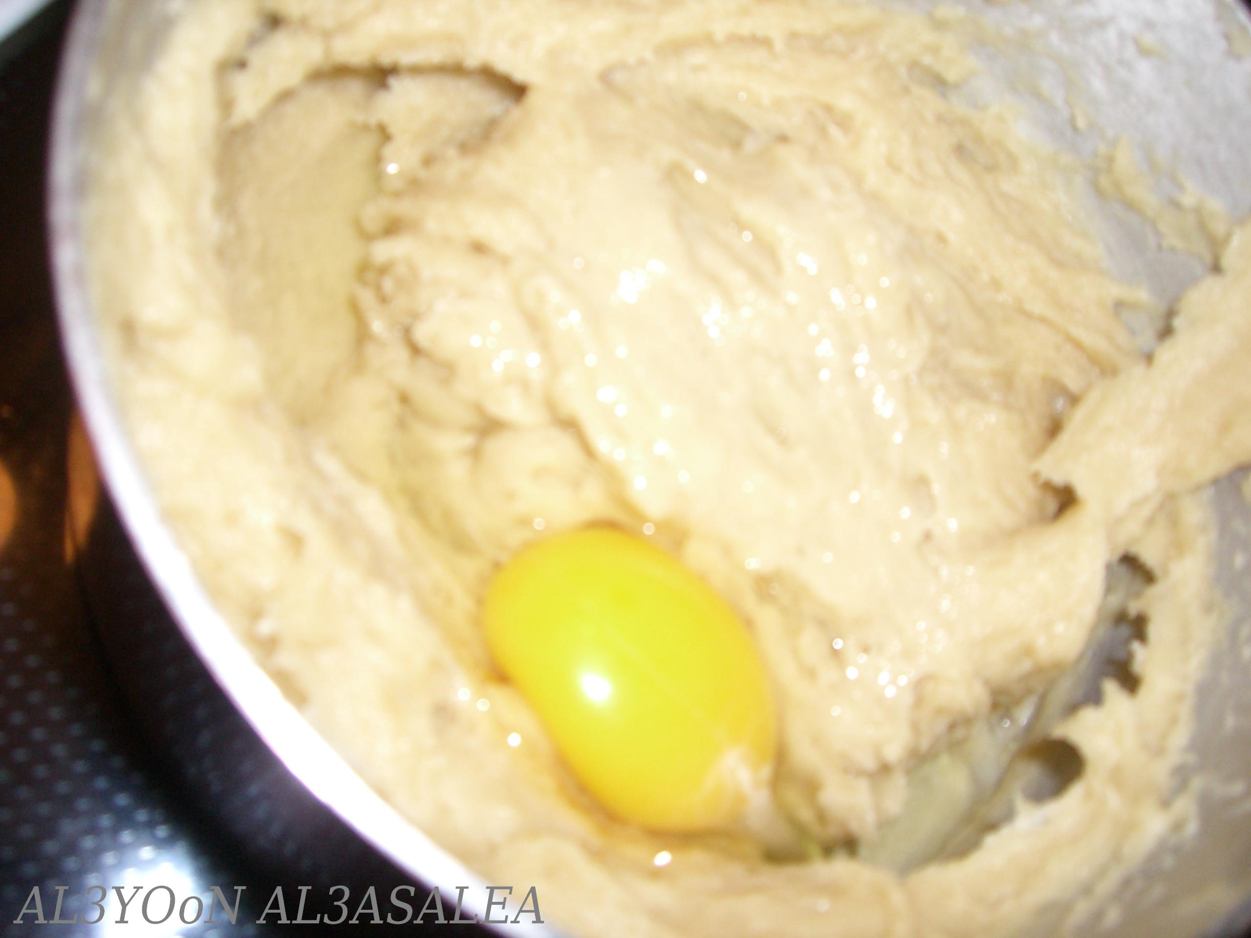 نظيف اول بيضه و نحرك بسرعه لين تتداخل مع العجين تماما