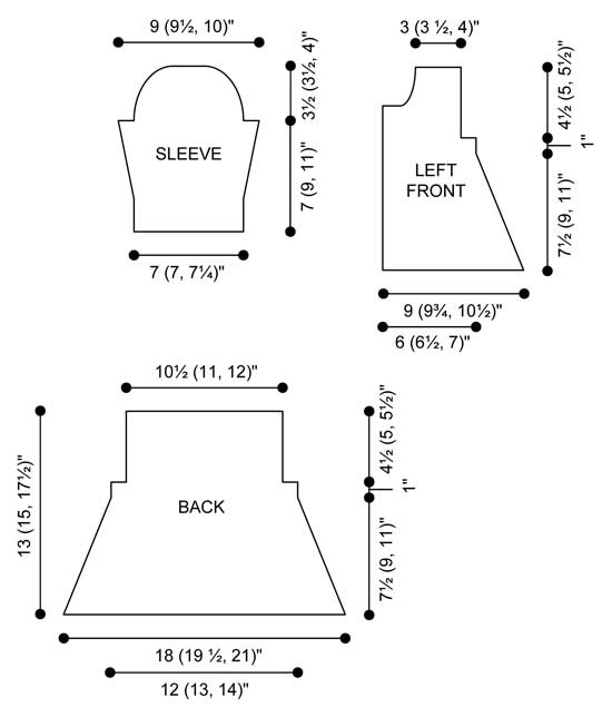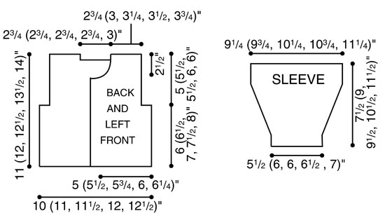 Block pieces to measurements. Sew shoulder seams. Set in Sleeves; sew sleeve and side seams.