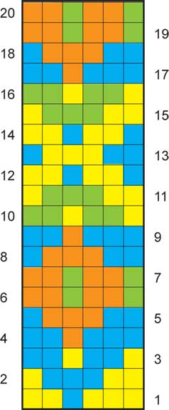 Rows 2-20: Continuing in St st and following chart, work Fair Isle pattern across row.