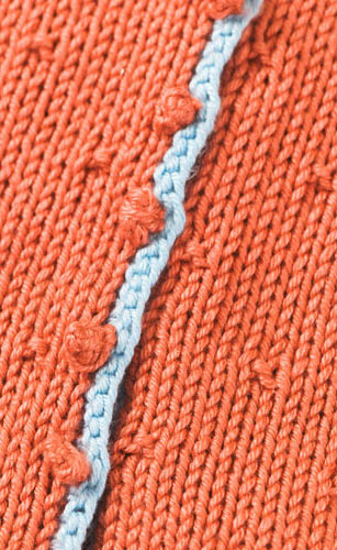 With MC, continue in St st for 2 1/2", end with a WS row.