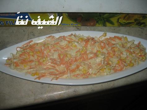 ملفوف مقطع شرايح صغيره وجزر مبشور وقليل من الذره