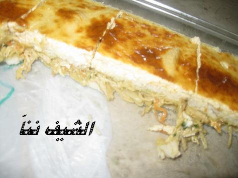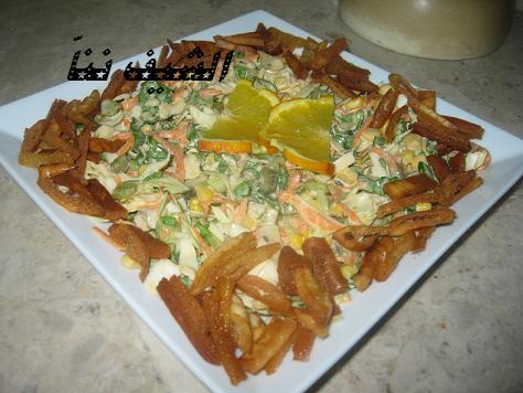 ثم توضع طبقه من النخي ثم الجرجير. ..ثم الرمان...ثم تسكب فوقها الصلصة