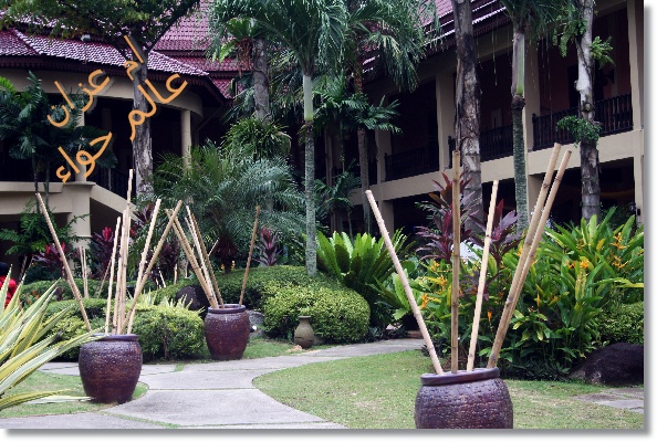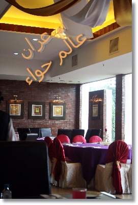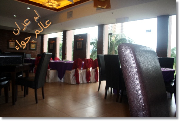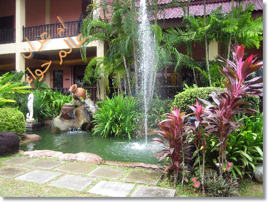 المدخل للمطاعم منطقه حلوه مملؤه بالنباتات والاسماك