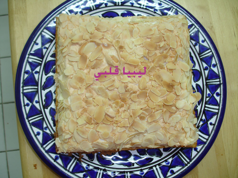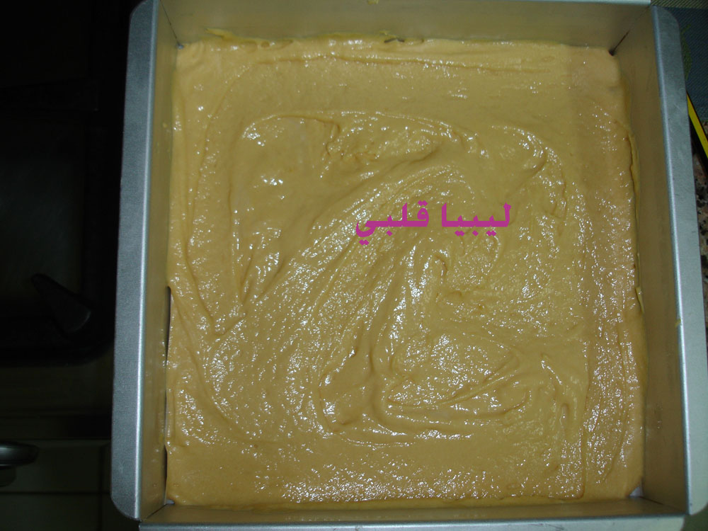 ندهن القالب المراد استعمله بالزبده ونضع ورق الزبده ,ثم يسكب خليط الكيك ونطرحه بتحريك الصينية